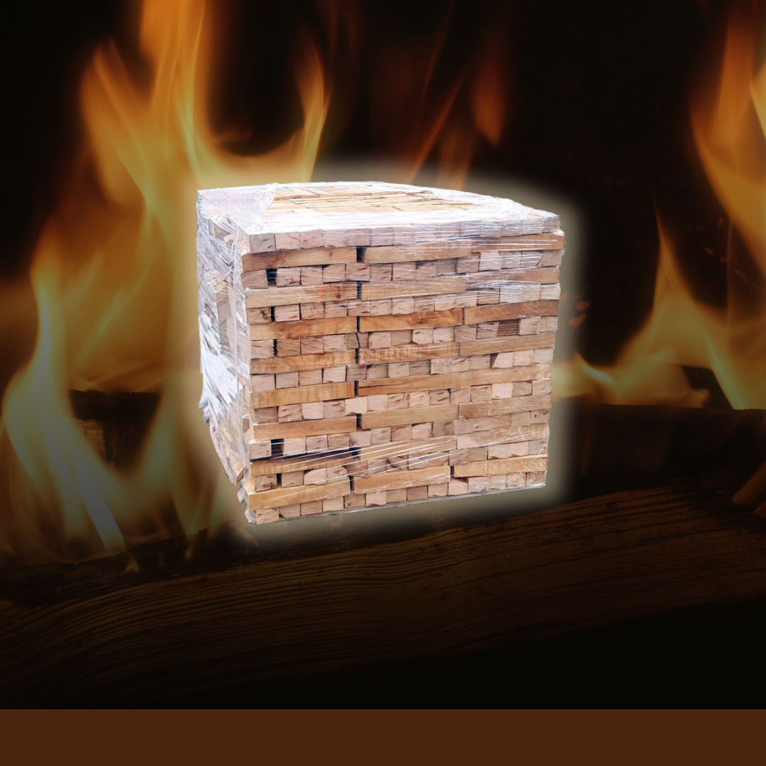 Durch die gleichmäßige Kantenform lässt sich das Kaminholz außerdem platzsparend stapeln. Selbstverständlich können Sie es auch einfach lose aufschütten (auch in unbelüfteten Räumen).
